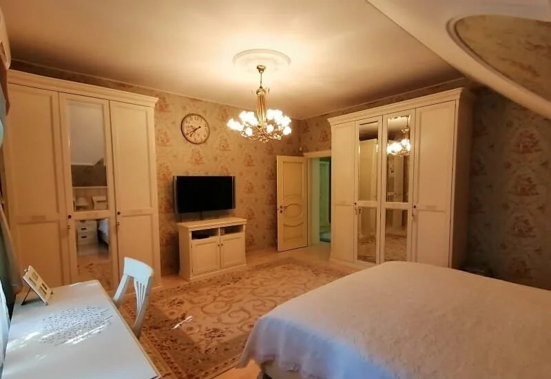 Продается уютный двухэтажный дом в живописном месте, в Одинцовском г. о. с. Жаворонки. Расположен на участке правильной формы 7.2 соток. В доме 4 спальни, кухня-гостиная, рабочий кабинет. Дом построен из качественных материалов и очень надежен. Общая площадь дома-208.5 м2 Планировка первого этажа: Тамбур-10.05 м2 Холл-8 м2 Кабинет-13.59 м2 Гараж-18.93 м2 Котельная комната-5.83 м2 Лестничный холл-17.45 м2 Сан.узел-6.4 м2 Кухня-гостиная-40.51 м2 Планировка второго этажа: Лестничный холл-15.39 м2 Ванная-6.40 м2 1 Спальная-25.55 м2 Детская-21.53 м2 2 Спальная-17.70 м2 Гостевая спальная-14.42 м2 На территории расположены беседка для барбекю, мастерская, баня, гараж. Во дворе много места для отдыха и занятия спортом. Дом находится в экологически чистом районе ,вдали от городской суеты. Хорошие соседи и развитая инфраструктура делают этот район еще более привлекательным для жизни. Все коммуникации в доме. Артезианская скважина-96 м. система очистки воды воды Еkоwаtеr с умягчением ЕSD518, котёл двухконтурный Vаillаnt.В случае отключения электроэнергии предусмотрен мощный генератор Хонда 14 КВТ с ТКМ. Монолитно ленточный фундамент, стены кирпичные, перекрытия железобетонные, крыша покрыта мягкой кровлей. Остается вся мебель и бытовая техника производства Россия,Германия,Италия.10 минут ходьбы до ж/ д платформы Жаворонки. 25 км. от МКАД. выезд на Можайское, Минское шоссе.